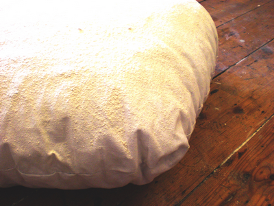von hand genäht, mit pigmenten bestreut